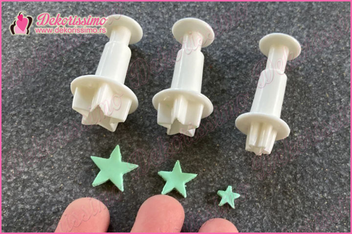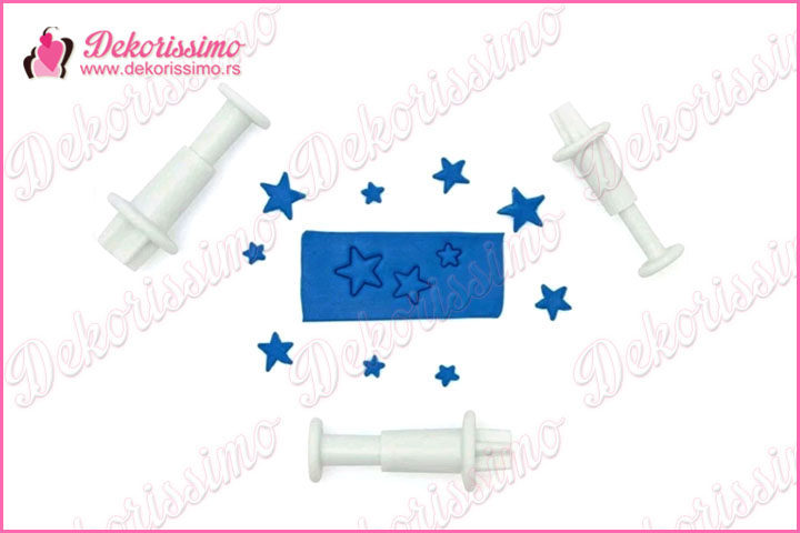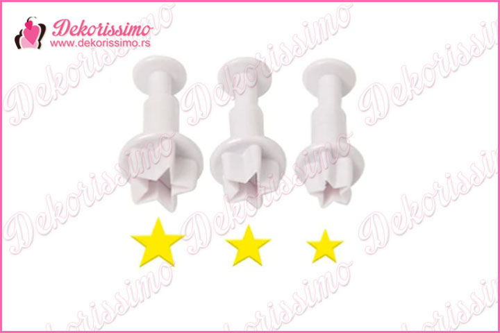 Dajte svojim tortama, kolačima i mafinima dašak sjaja uz naš set od 3 modle sa izbacivačem „Zvezdice“ (K1400).