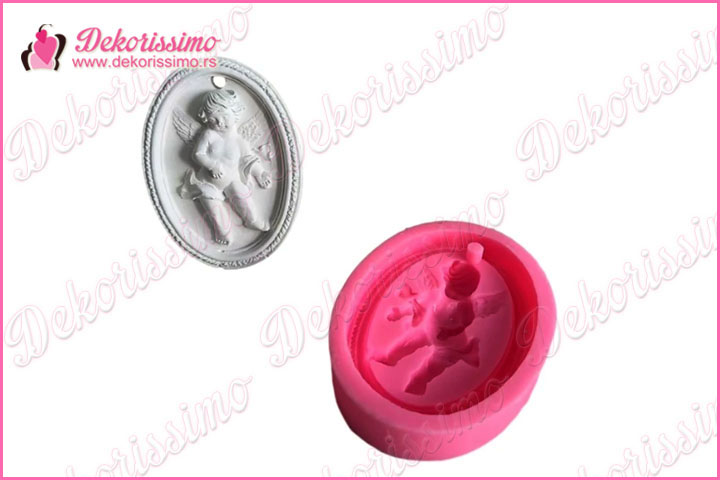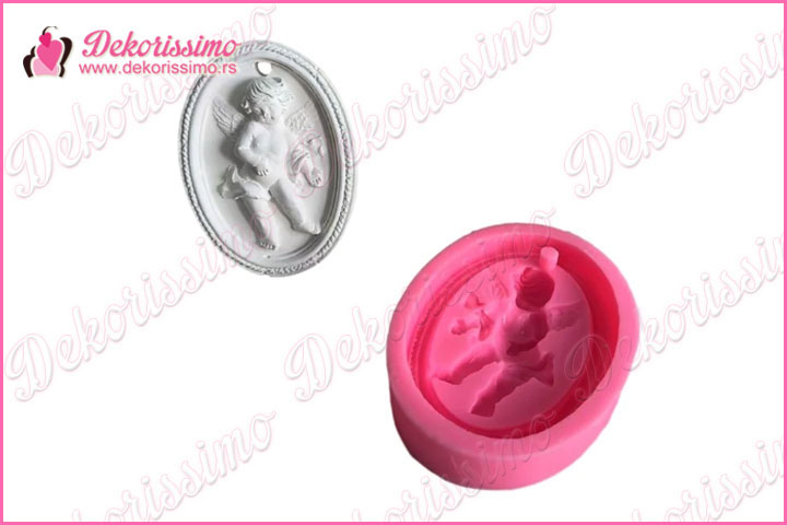 Kreirajte besprekorno elegantne torte za krštenja ili godišnjice! Silikonska modla ‘Anđeo sa ramom’ (K4694) daje vam ovalni medaljon sa figurom anđela.