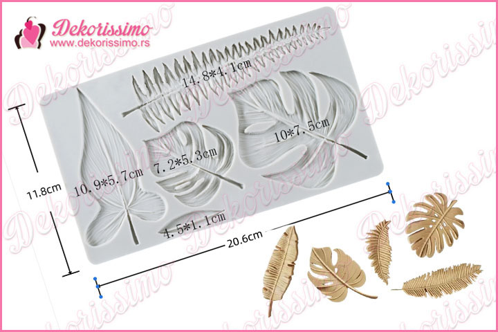 Idealna je za letnje torte, rođendane, tematske zabave, svadbe, kao i za sve ljubitelje tropskog i boho stila dekoracije. Listovi izrađeni od fondana, gum paste mase, marcipana ili čokolade izgledaće realistično zahvaljujući precizno definisanim detaljima i teksturi.
